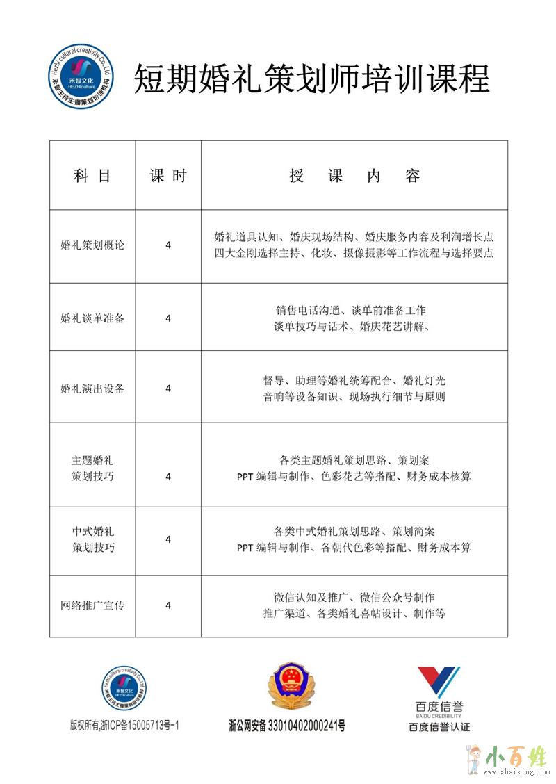 培训内容:婚礼统筹,婚礼策划(色系与花艺的搭配,新人策划思路的建立,婚